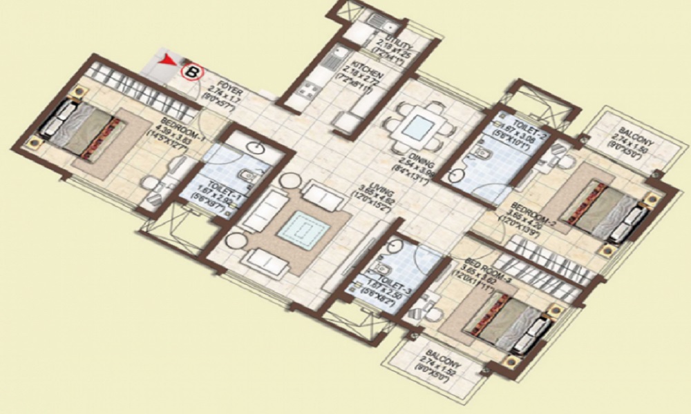 2.5 BHK | 1590-1676 | Starting from : ₹ 1,06,00,000/- |