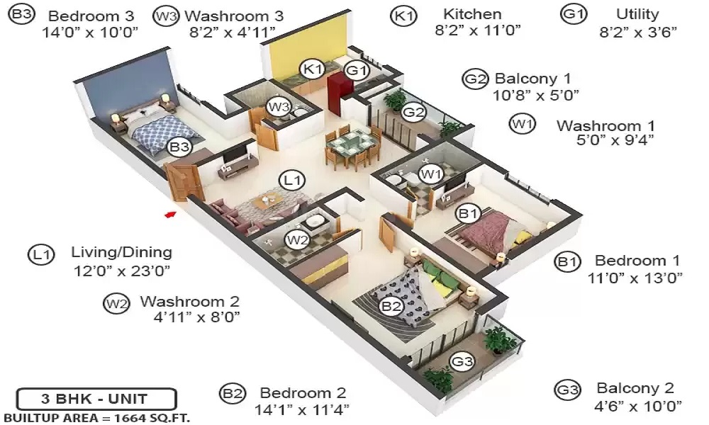 3bhk | 1615 -1863 | Starting from : ₹ 1,26,00,000/- |